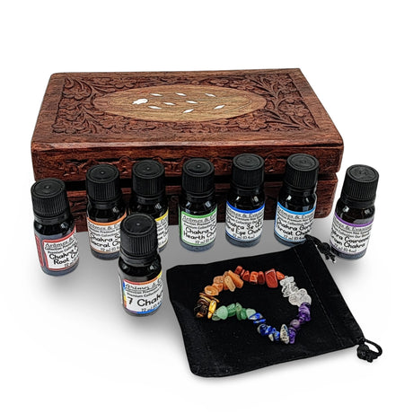 7 Chakras -Essential Oil & Bracelet -Deluxe Gift Set with Wood Box -Limited Edition