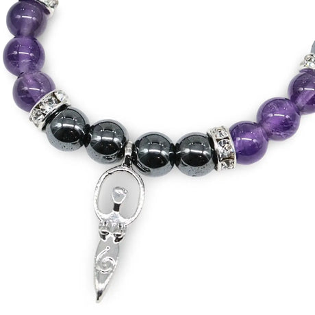 Bracelet - Hematite & Amethyst with Goddess Charm - 8mm