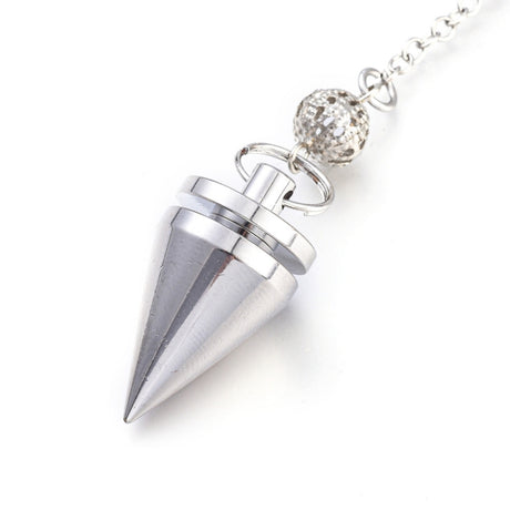 Pendulum divination is a method of divination that uses a weighted object, usually a crystal, wood, or metal pendulum, suspended from a chain or cord. The pendulum is held above a divination board or a person's energy field to receive answers to questions.