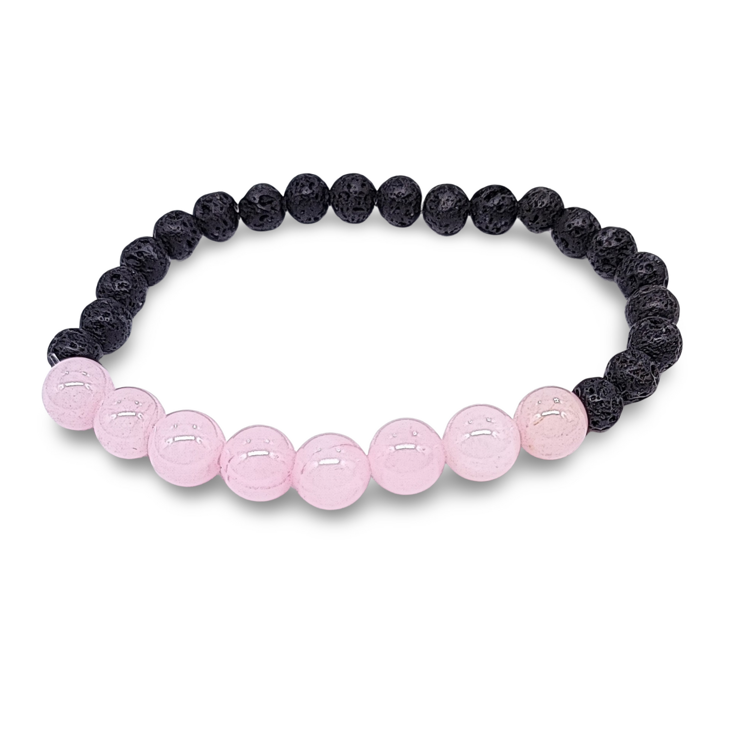 Experience the powerful energies of Rose Quartz and Lava Stone in this exquisite bracelet. Crafted with love and care, each bead is made from natural gemstones, ensuring a unique and one-of-a-kind piece.
