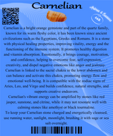 At a convenient size of 3.5"X4", these cards are perfect for carrying around with you wherever you go. Whether you're a crystal enthusiast or just someone looking to add a little extra oomph to your life, these descriptive cards will help you harness the energy of Carnelian and all its amazing properties.