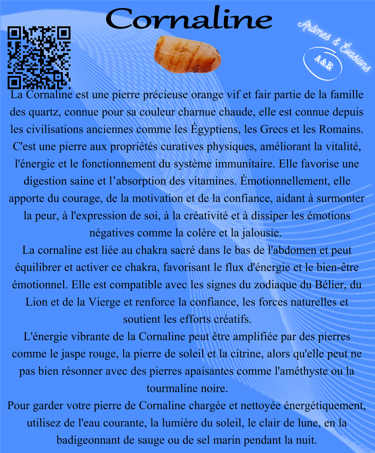 Introducing the Descriptive Cards - Precious Stones & Crystals - Carnelian! These little gems (pun intended) are your go-to guide for unlocking the powers of Carnelian in both English and French. With these bilingual descriptive cards, you'll be able to tap into the virtues and benefits of this precious stone without getting lost in a sea of technical jargon.