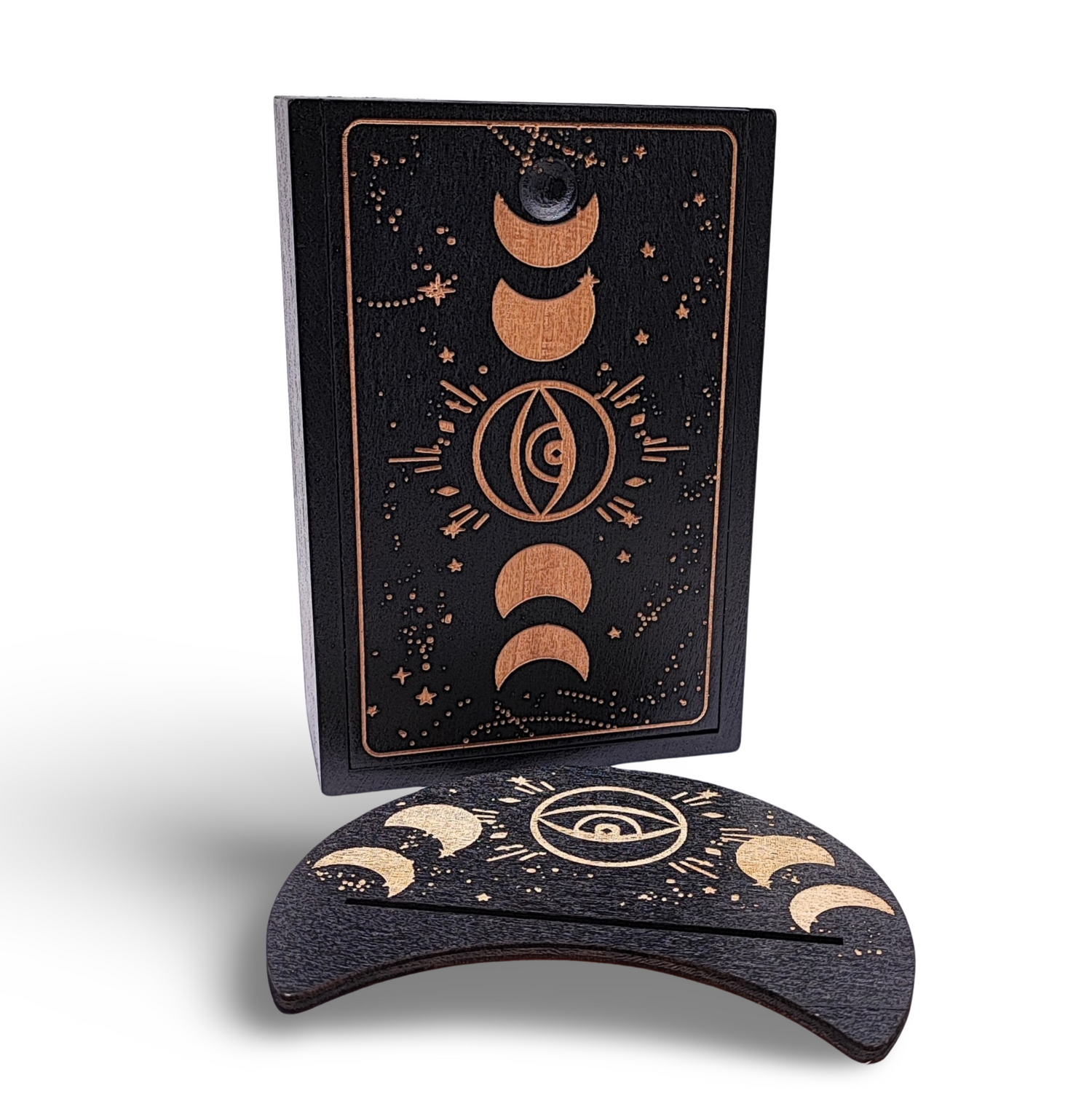 Tags: Moon Phase, Crystal Ball, Wood Box, Tarot Display Card, Tarot Card Storage , Wooden Box, Carved Wood Box
