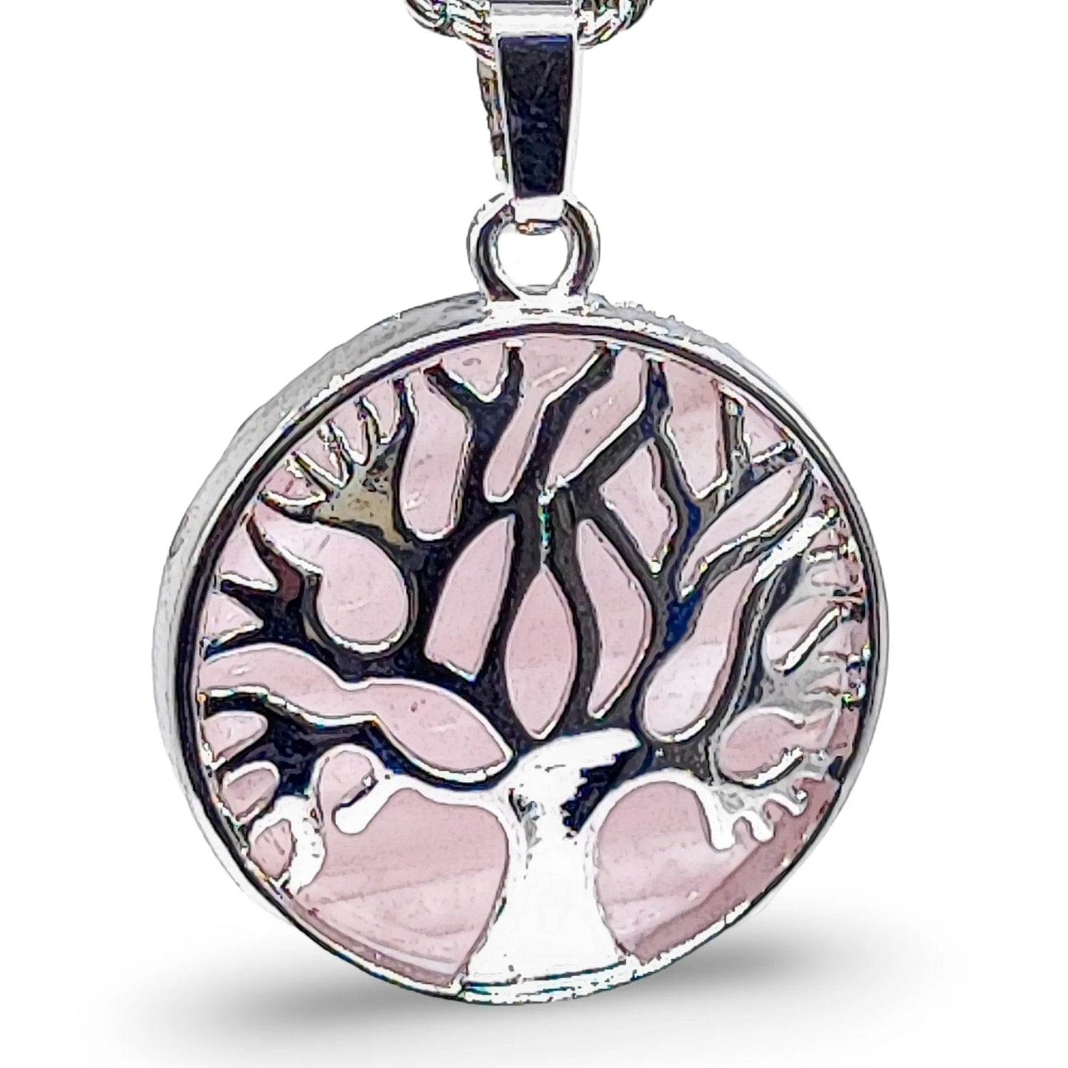 Necklace - Flat Round with Tree of Life - Rose Quartz