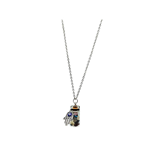 Necklace -Gemstone Chips & Fatima Hand -Glass Bottle