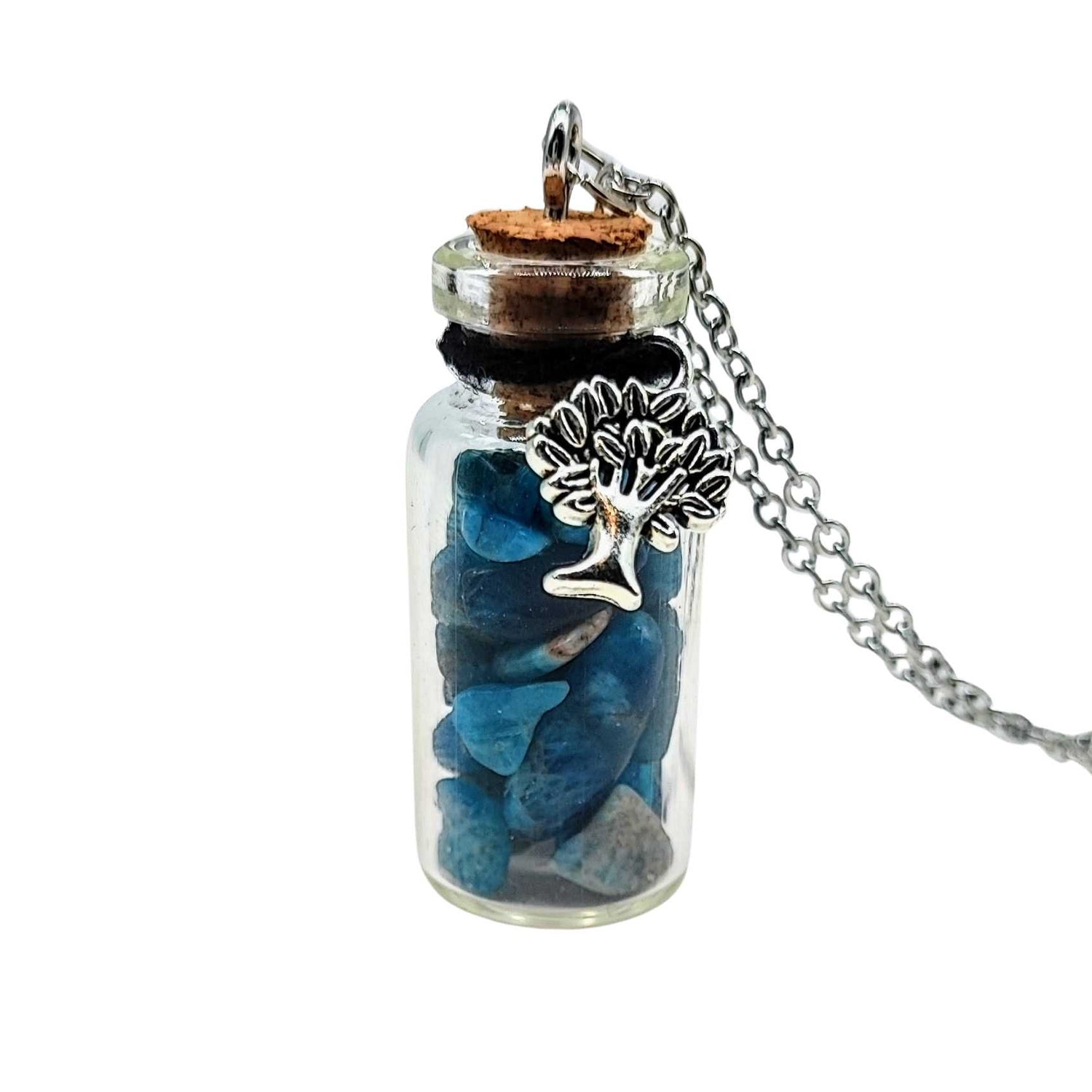 Necklace -Gemstone Chips & Tree of Life -Large Glass Bottle