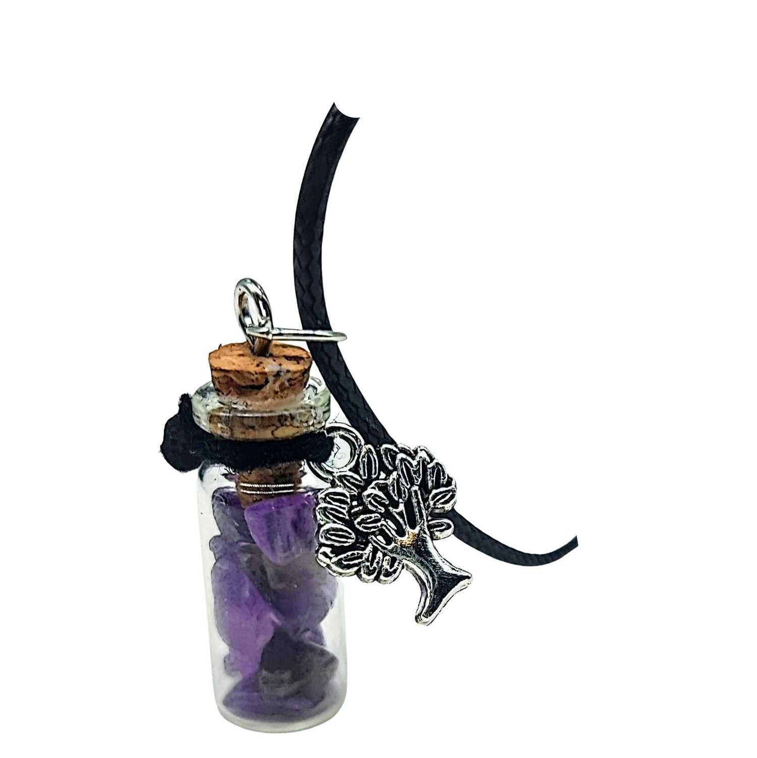 Necklace -Gemstone Chips -Tree of Life -Small Glass Bottle