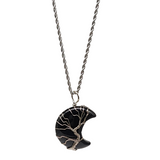 Necklace - Tree of Life - Natural Black Obsidian - Crescent Moon
