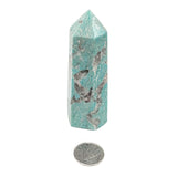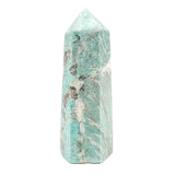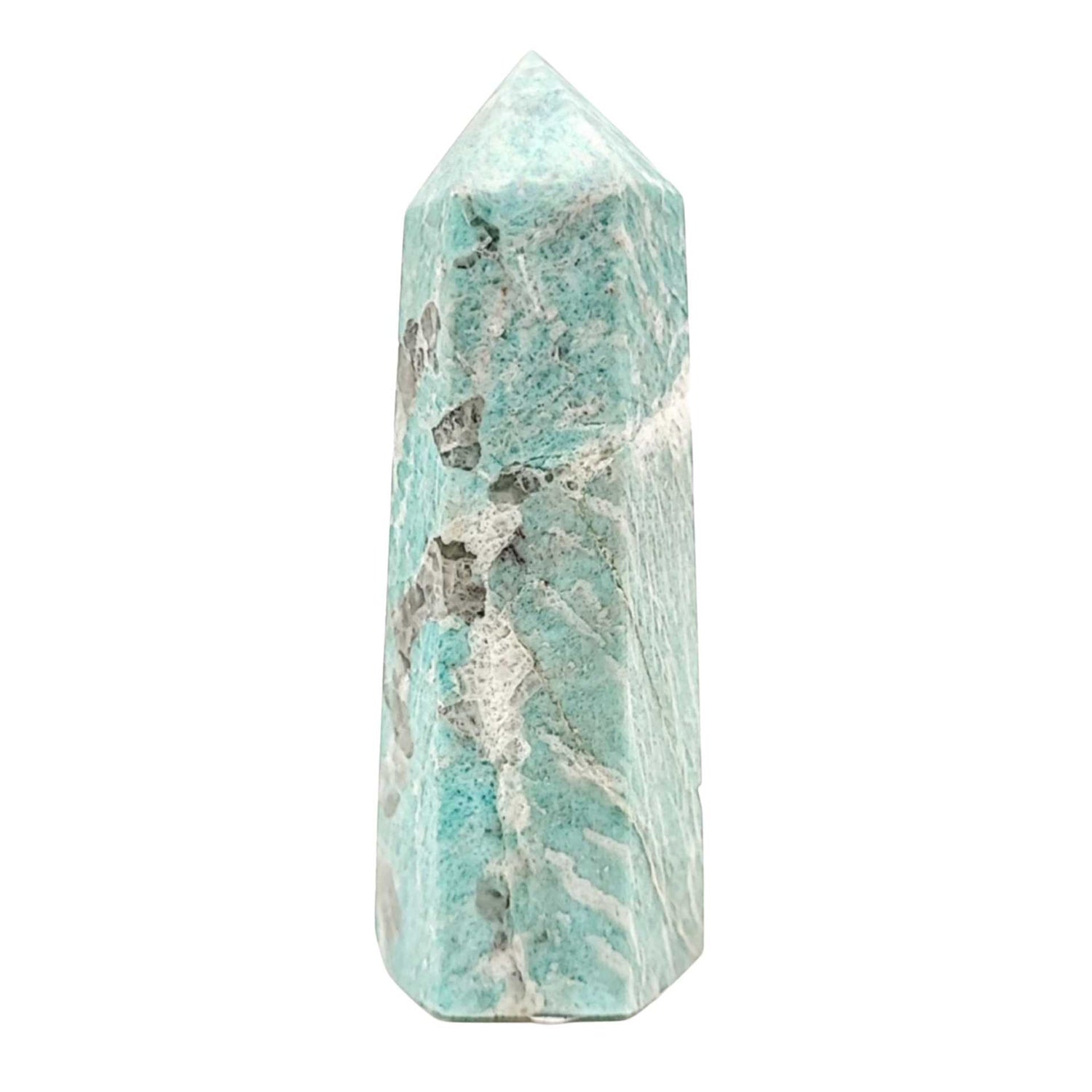 The Amazonite Crystal Tower will uplift and purify energy (if its point is undamaged), so you can place it in any area that needs to be re-energized with strong energy. The length of this tower/wand/obelisk/point is 5cm-7.5cm and the width is 2cm.