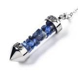 Pendulum in precious stones, with glass container and accessories in platinum and iron alloy.