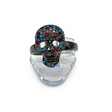 Tags: Cubic Zirconia Skull Finger Ring, Electrophoresis Black Plated Brass Gothic Punk Jewelry for Women, Colorful
