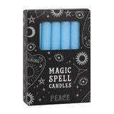 Box of 12 Light Blue spell candles for use with rituals to attract Peace. Candle magic is one of the simplest forms of spell casting in which the caster decides on a goal, visualizes the end result and focuses intent or will to manifest that result.