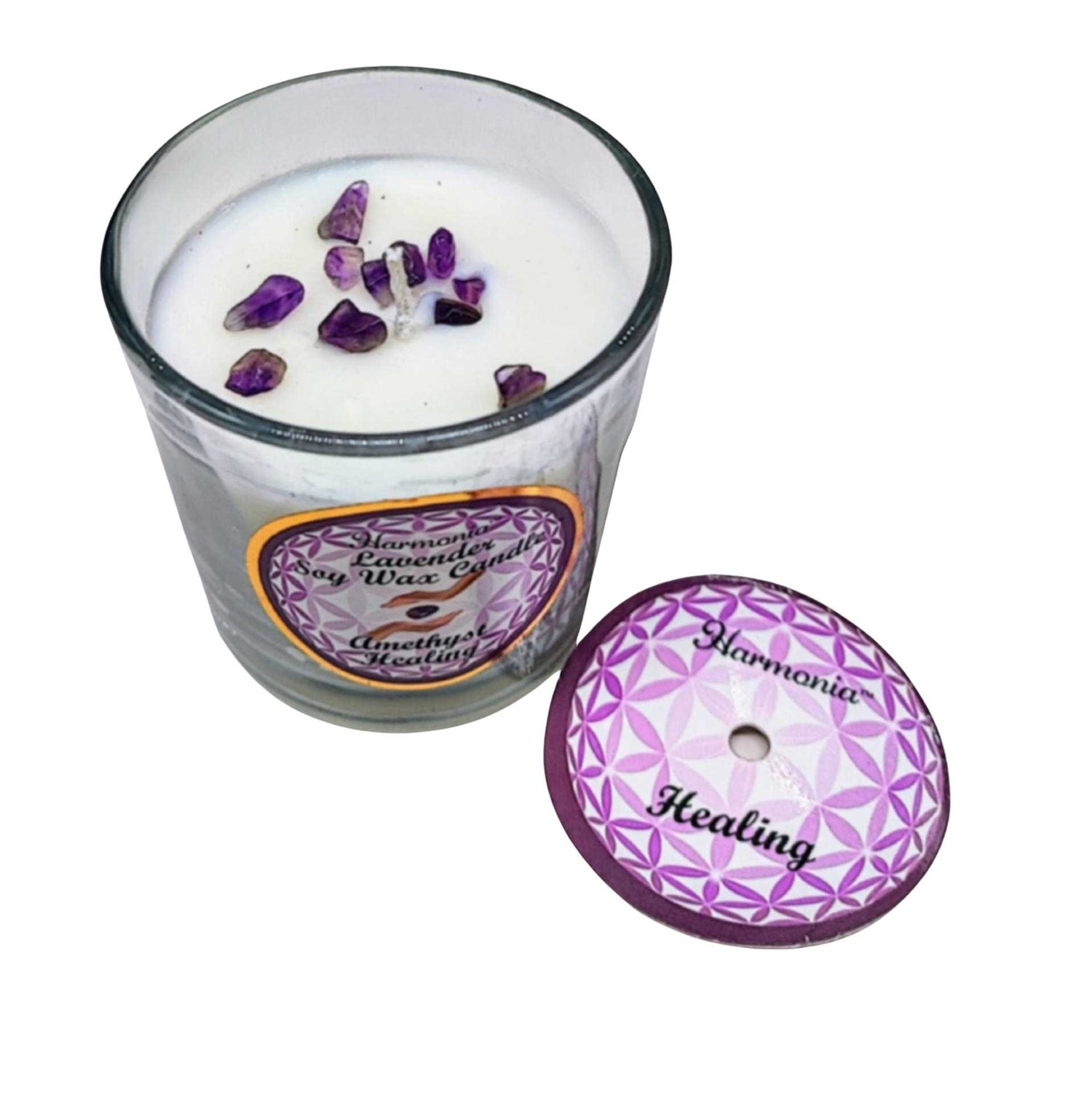 Tags: Harmonia Good Luck, Candle, Healing Candle, Lavender Oil, Essential Oil, Gemstones, Amethyst,