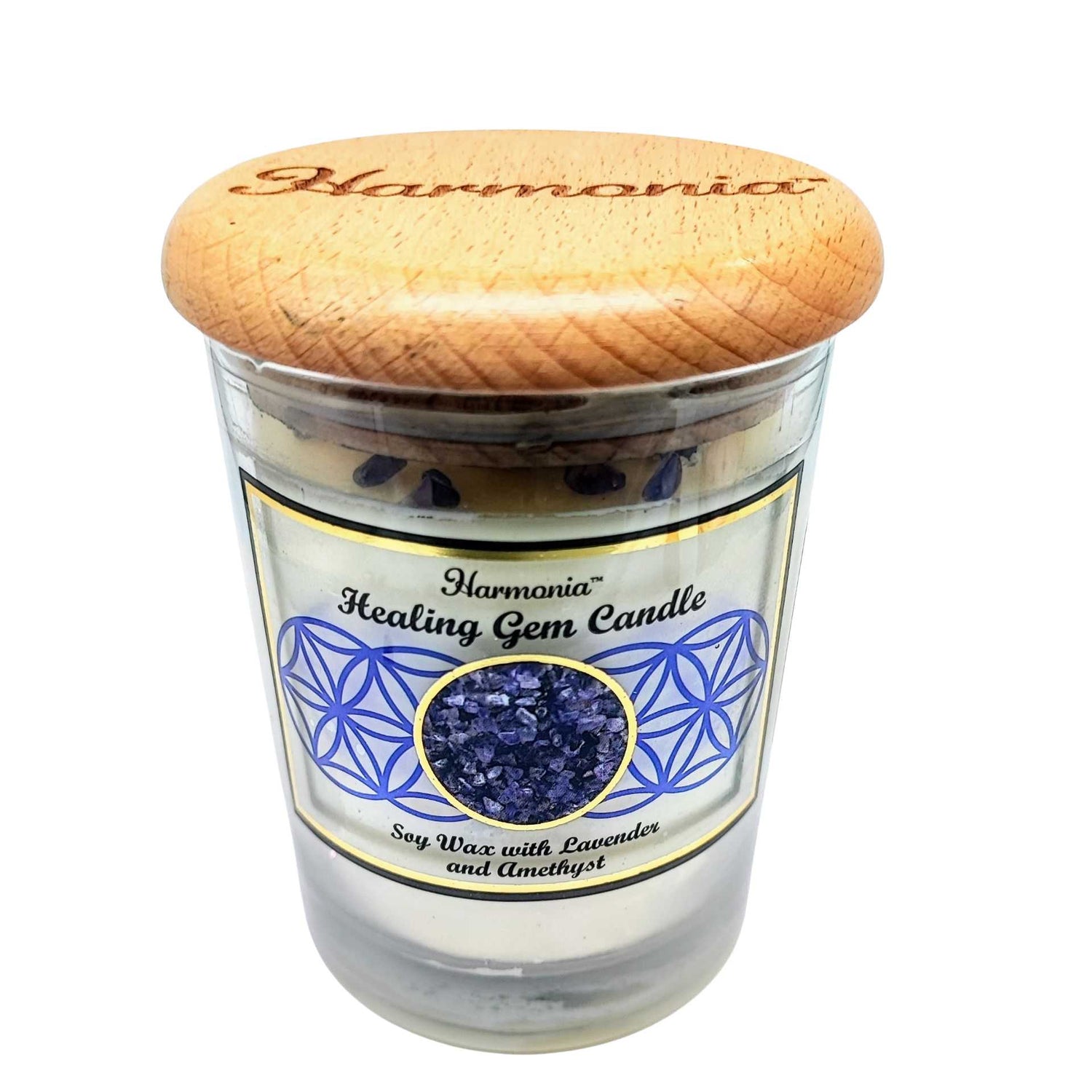 Tags: Harmonia Healing, Candle, Healing Candle, Lavender Oil, Essential Oil, Gemstones, Amethyst,
