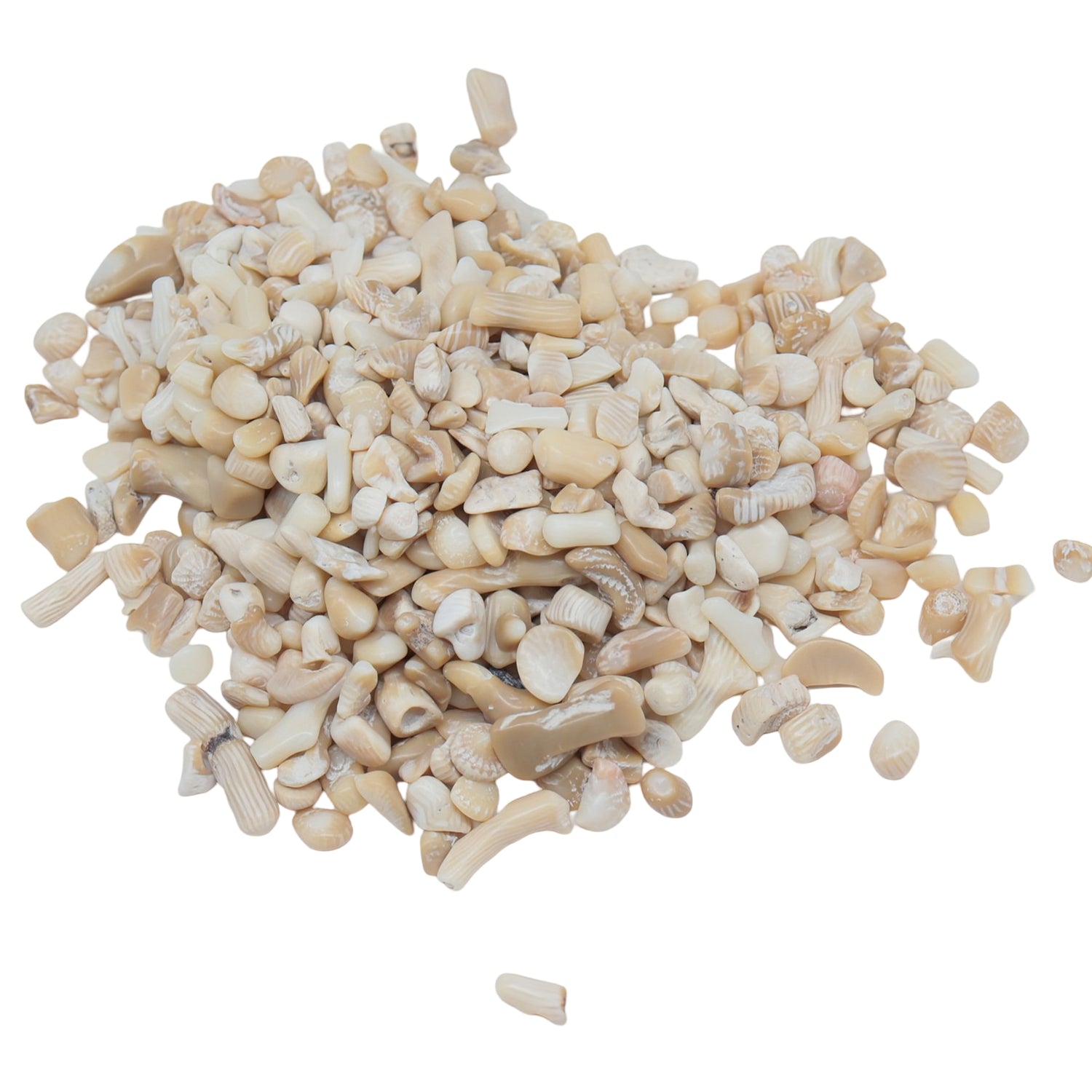Whether you're creating jewelry, adding a pop of color to your home decor, or simply enjoying the beauty of these natural stones, our Stone-Tumbled Chips in White Coral & Bamboo are a must-have. Get your hands on these stunning stones and let your creativity shine!