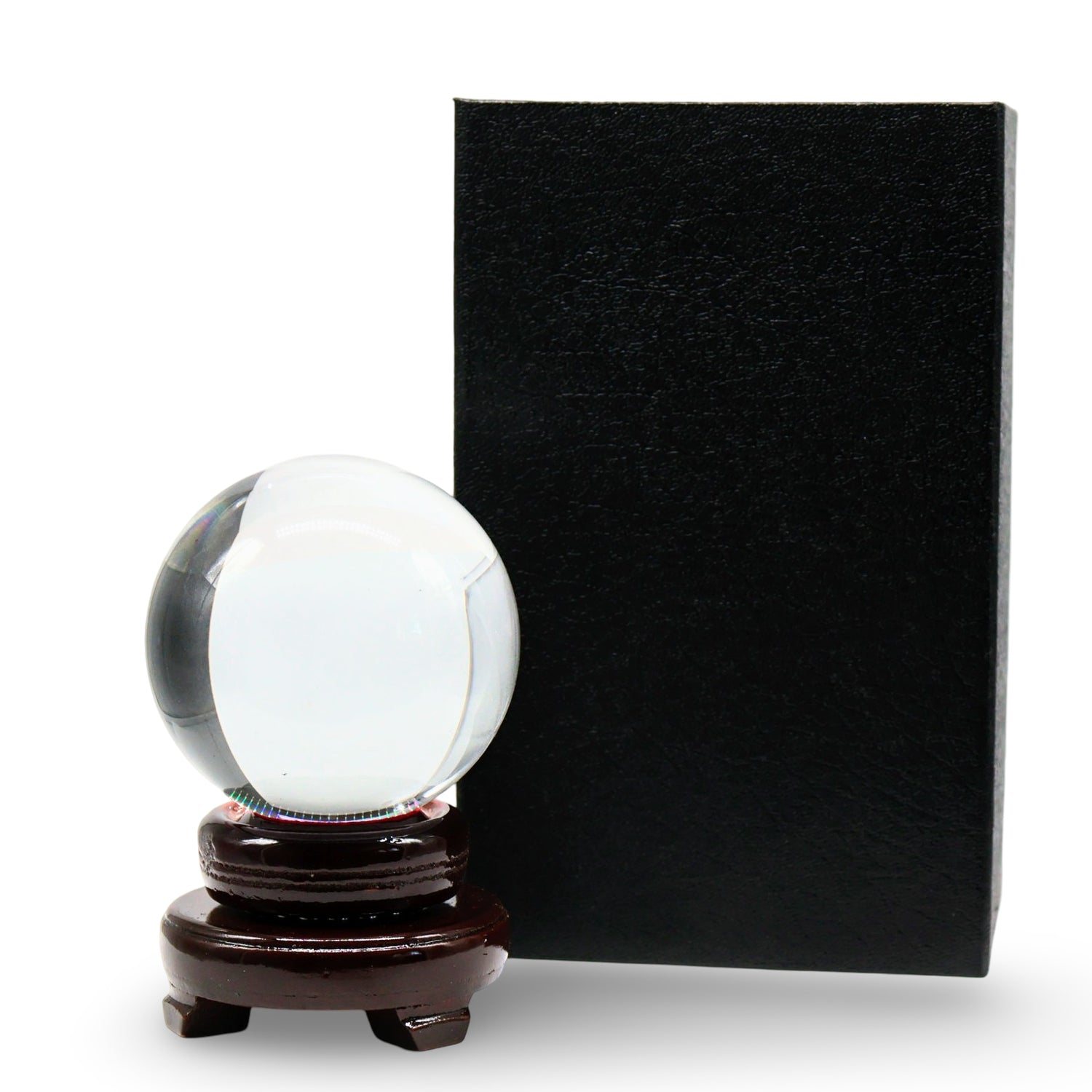 Behold the mystical wonder of the Wicca & Pagan Clear Crystal Ball on Stand - Small! This enchanting 8cm crystal ball comes with a charming wooden stand and a display box, making it the perfect addition to any magical collection.