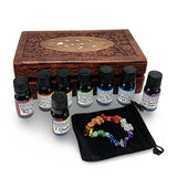 Introducing our Premium Chakra Collection Gift Set in a deluxe wooden box, complete with 7 specialized 12 ml Essential Oils for each Chakra, one 12ml 7 chakras mixed oil and an exquisite Chakra Bracelet!