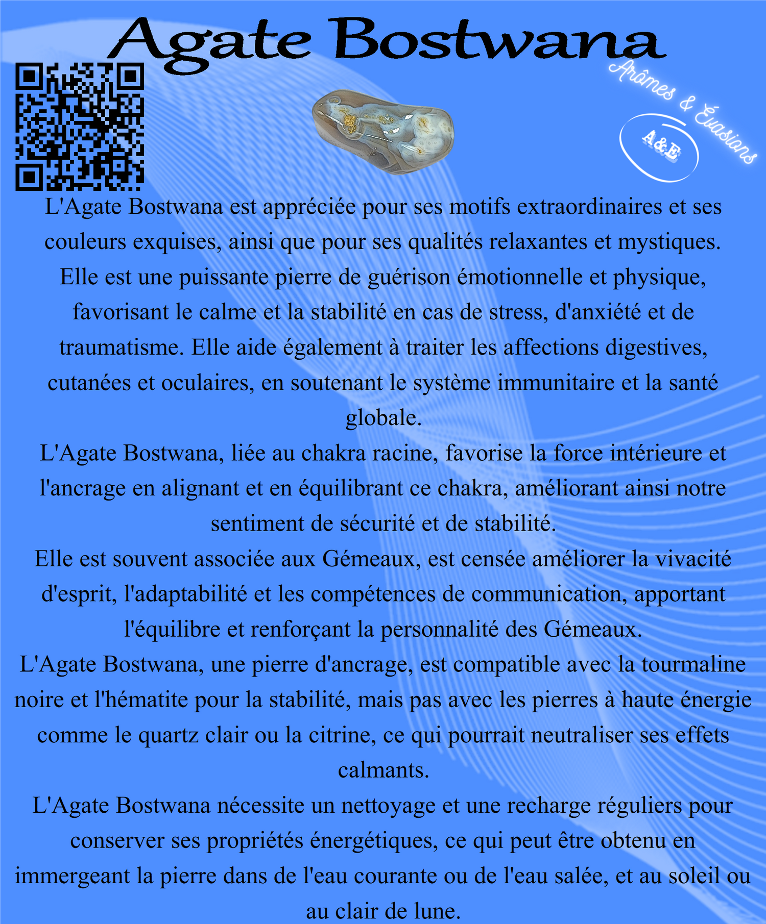 Discover the beauty and healing properties of Botswana Agate with our Descriptive Cards - Precious Stones & Crystals collection!