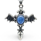 Celebrate Your Beliefs with Our Vintage Silver Angel Wing Cross Necklace - Adorned with Kyanite Gemstone