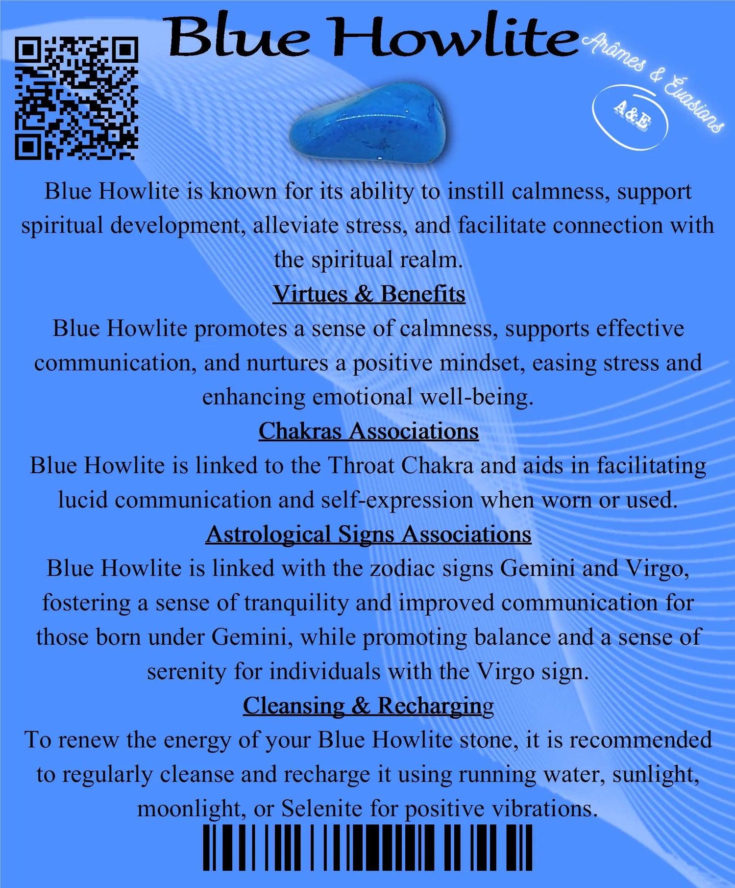 Mots clés : Howlite bleue, Cartes descriptives Howlite , Cristaux Howlite, Cristal Howlite , Pierre Howlite , Pierres précieuses Howlite, Signification Howlite , Bleu