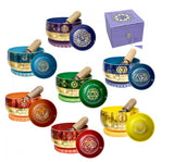 Chaque bol est magnifiquement conçu avec un anneau de coussin multicolore, un maillet et une boîte, ce qui le rend parfait pour votre espace sacré ou comme cadeau attentionné. Fabriqués à partir d'un alliage unique de cuivre, de fer, d'étain, de plomb et de mercure, ces bols créent des tons harmonieux qui favorisent l'équilibre et la relaxation. Leurs couleurs vibrantes et leurs motifs complexes ajoutent du charme et de l'énergie à n'importe quelle maison ou espace de méditation.