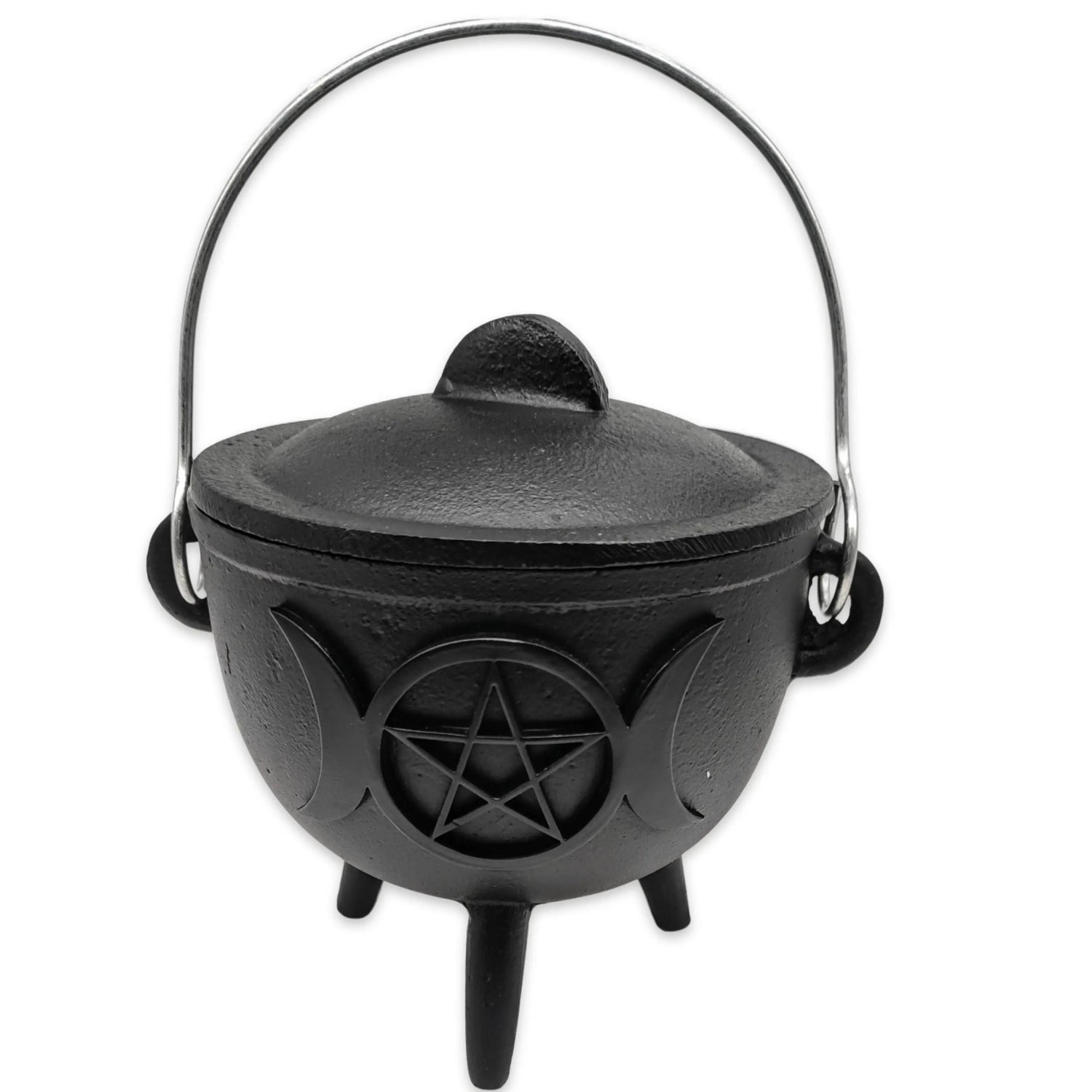 Wicca & Païen -Chaudron -Fonte -Triple Lune & Pentacle -4,5''