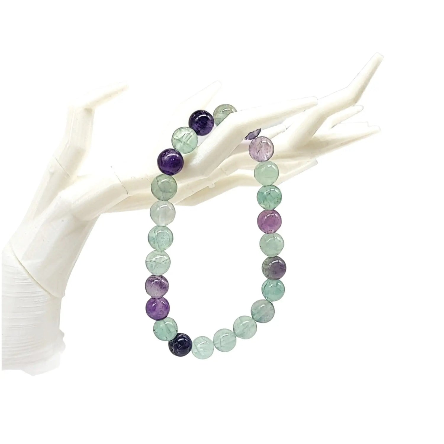 Découvrez la beauté enchanteresse et l'élégance de notre bracelet en fluorite arc-en-ciel de 8 mm.