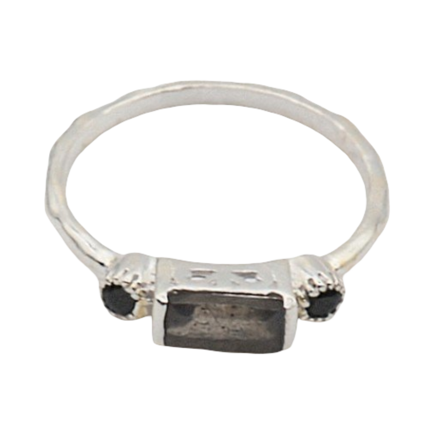 Bague – Argent sterling 925 – Forme rectangulaire – Choix de pierres précieuses : Labradorite, Grenat, Amazonite – Tailles 6-7-8