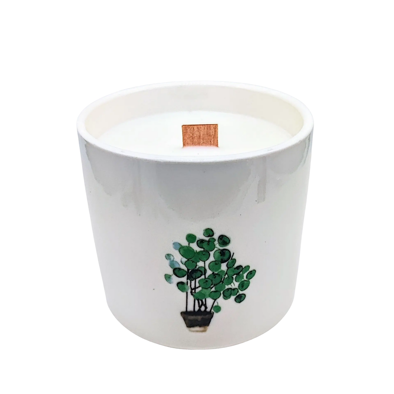 La bougie est livrée dans un élégant pot rond en céramique qui peut être réutilisé une fois la bougie terminée. Et au lieu d'une mèche traditionnelle, chaque bougie contient une mèche en bois qui ajoute une touche de charme rustique à toute l'expérience.