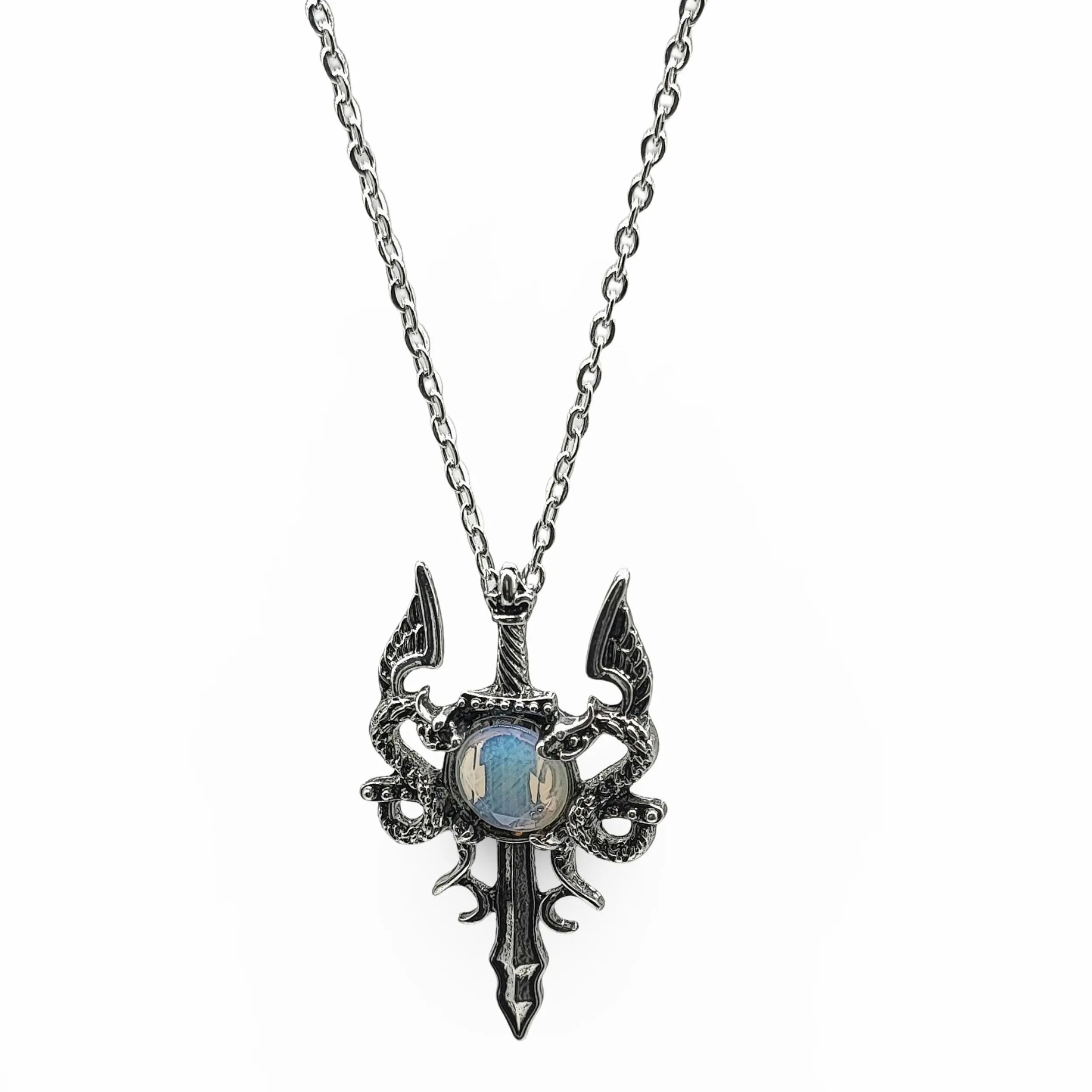 Présentation du Collier -Épée de Dragon -Opalite ! Ce superbe bijou n’est pas un collier ordinaire. C'est une pièce puissante qui fera tourner les têtes et vous fera sentir comme une princesse guerrière.