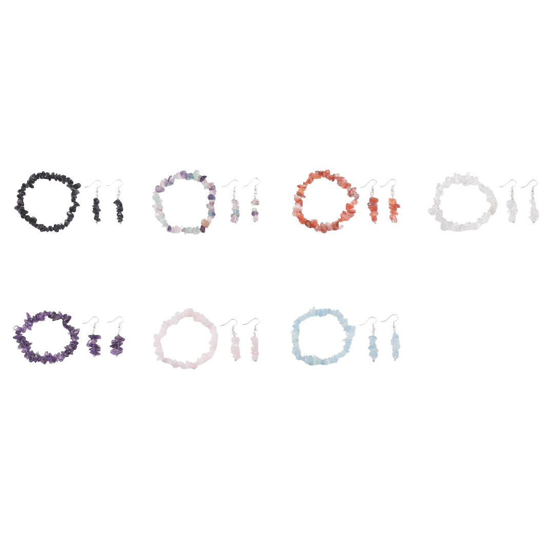 Featuring a stunning selection of gemstones including Amethyst, Aquamarine, Black Obsidian, Crystal Quartz, Fluorite, Red Agate, and Rose Quartz, this set is designed to add a touch of elegance to any outfit. Each piece is thoughtfully crafted with high-quality gemstone chips, offering a unique and timeless design. Whether you're treating yourself or surprising a loved one, this beautiful gift set is a meaningful way to celebrate life's special moments.
