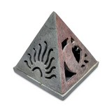Candle & Incense Holder - Soapstone Pyramid - Sun & Moon