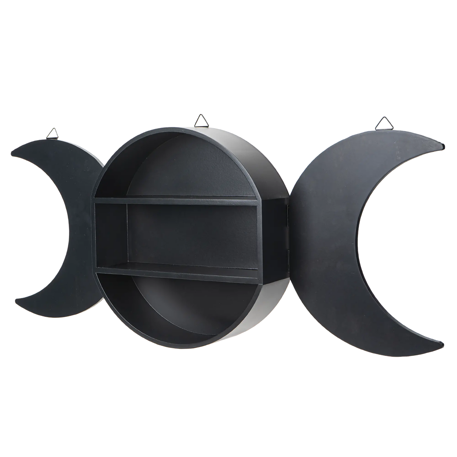 The Triple Moon Wall Shelf is a symbolic and functional décor piece inspired by lunar spirituality and sacred balance. Representing the Maiden, Mother, and Crone, this shelf brings meaning, intention, and visual harmony to any spiritual or mystical space.