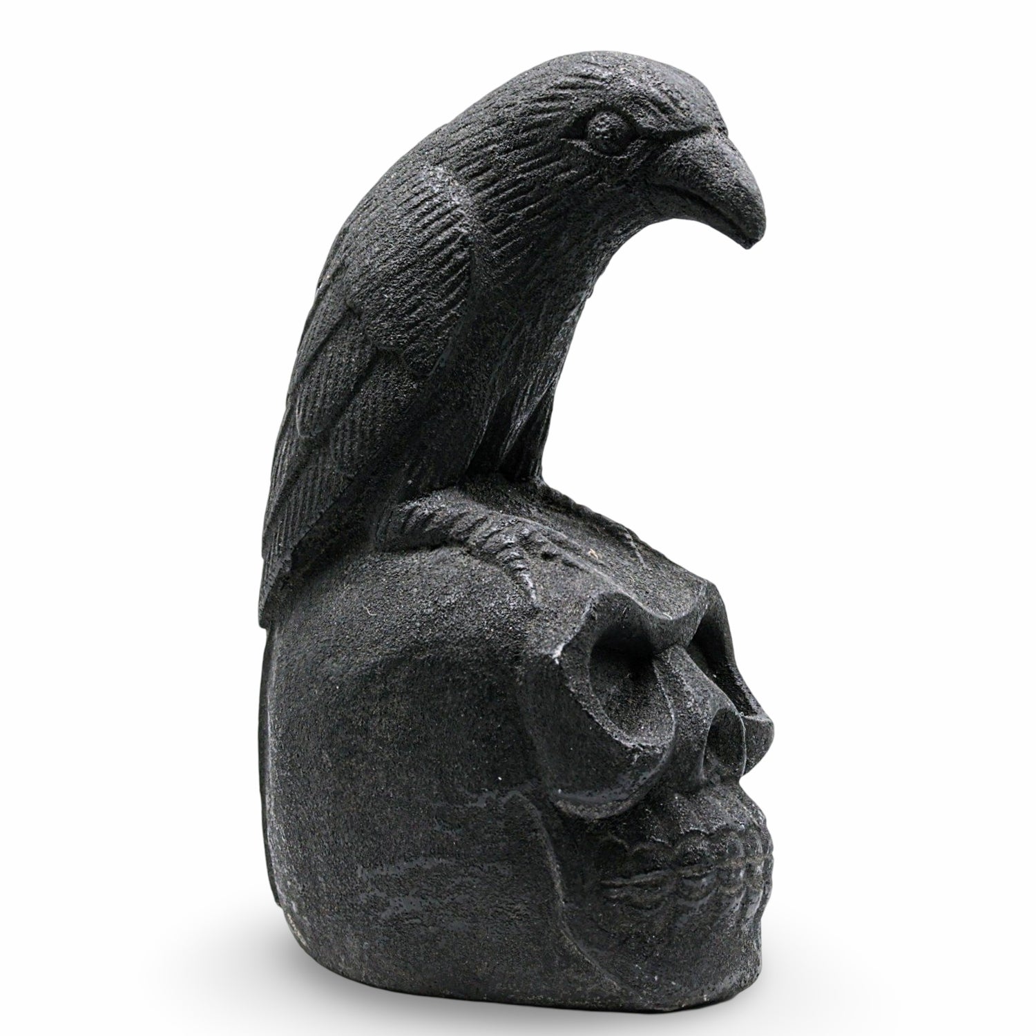 Home Decor - Volcanic Stone Statue - Skull & Raven