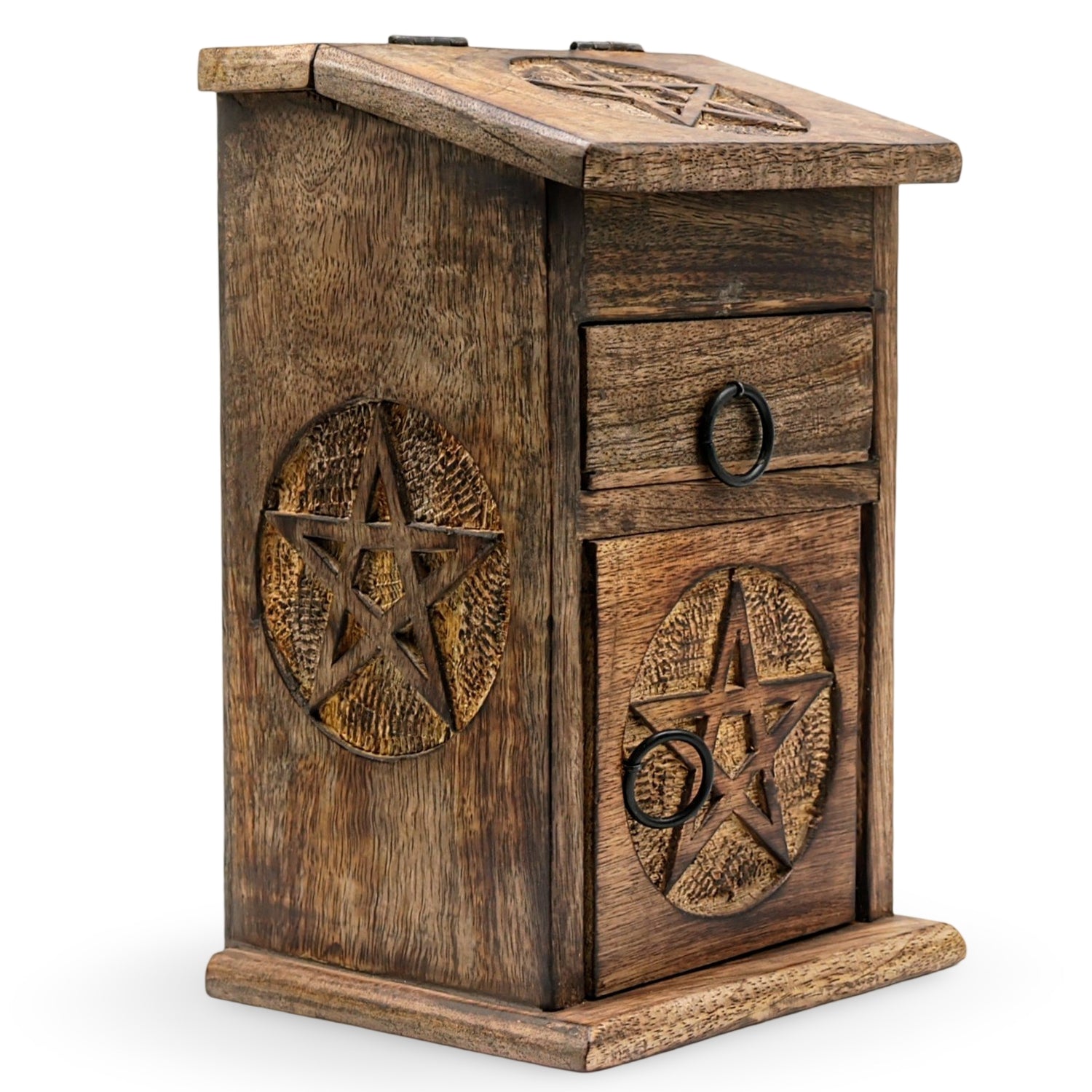 Introducing the Wooden Storage Pentacle! This charming little almirah is not only a practical storage solution, but also a stunning work of art. Handmade with intricate carvings of the Tree of Life, it symbolizes growth, wisdom, and connection to all living beings.