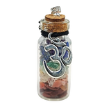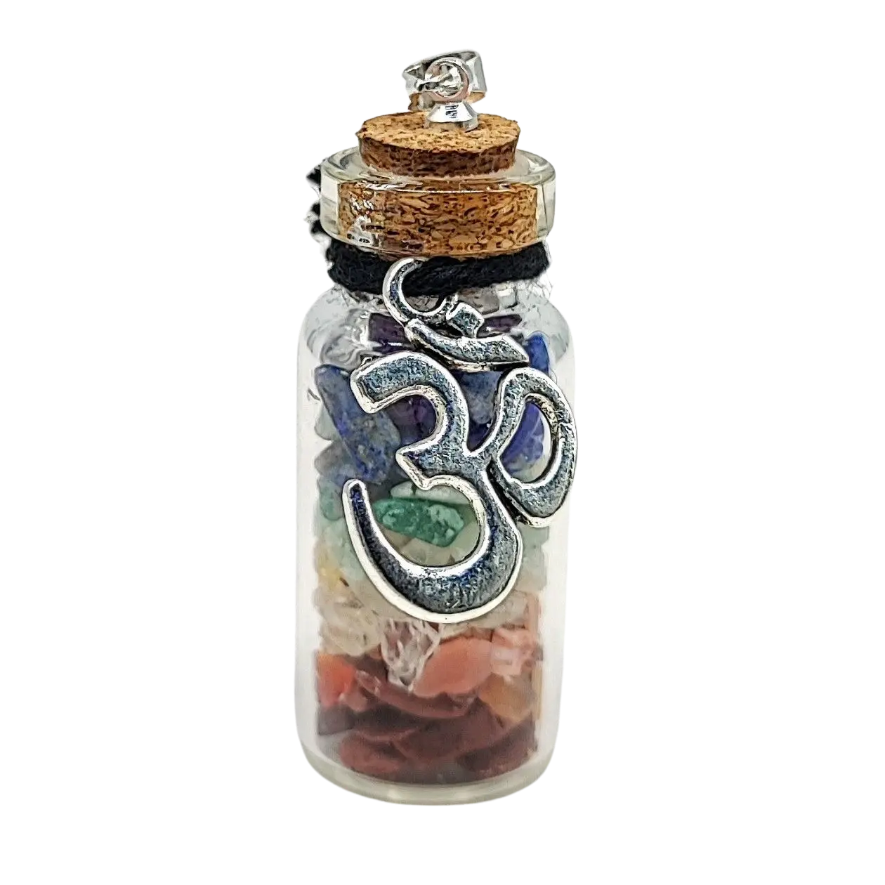 Necklace -7 Chakras Gemstone Chips -OM Charm -Large Glass Bottle