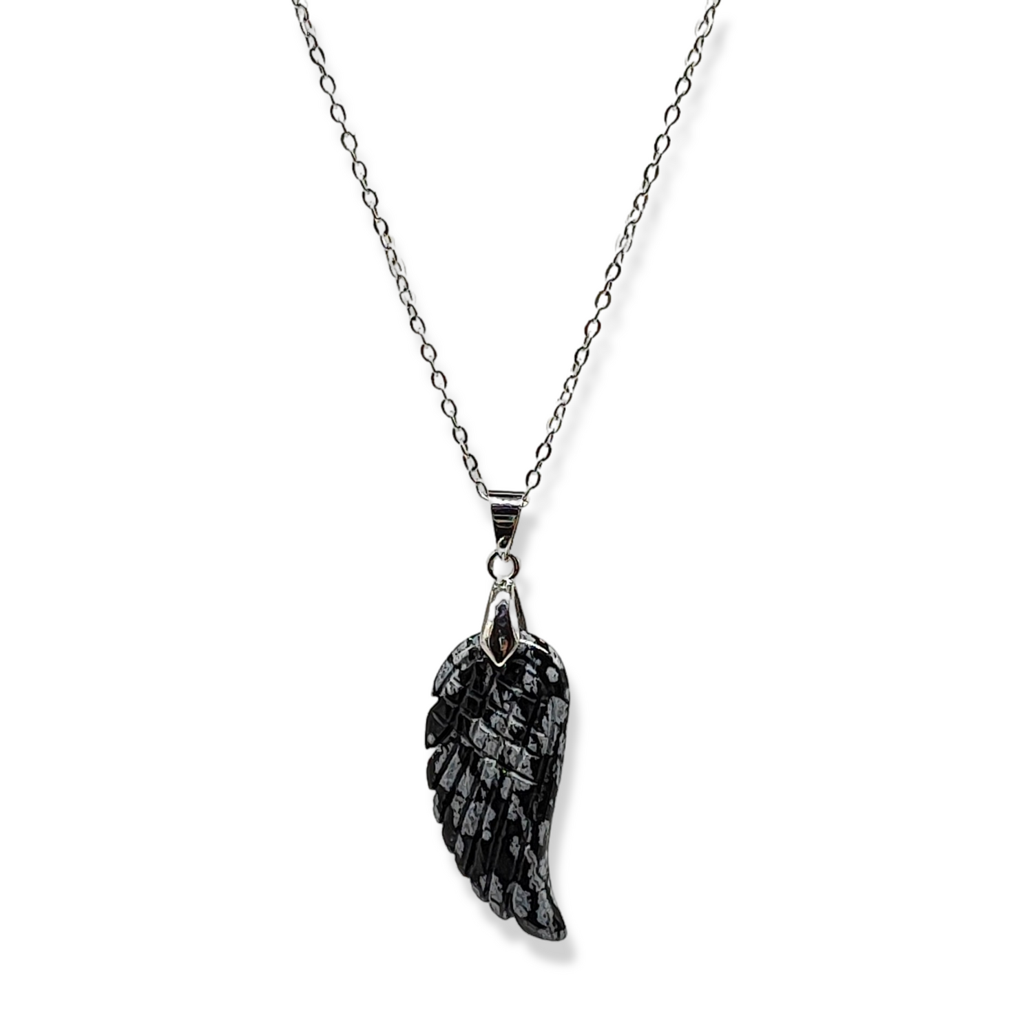 Necklace -Gemstone -Angel Wings -Snowflake Obsidian