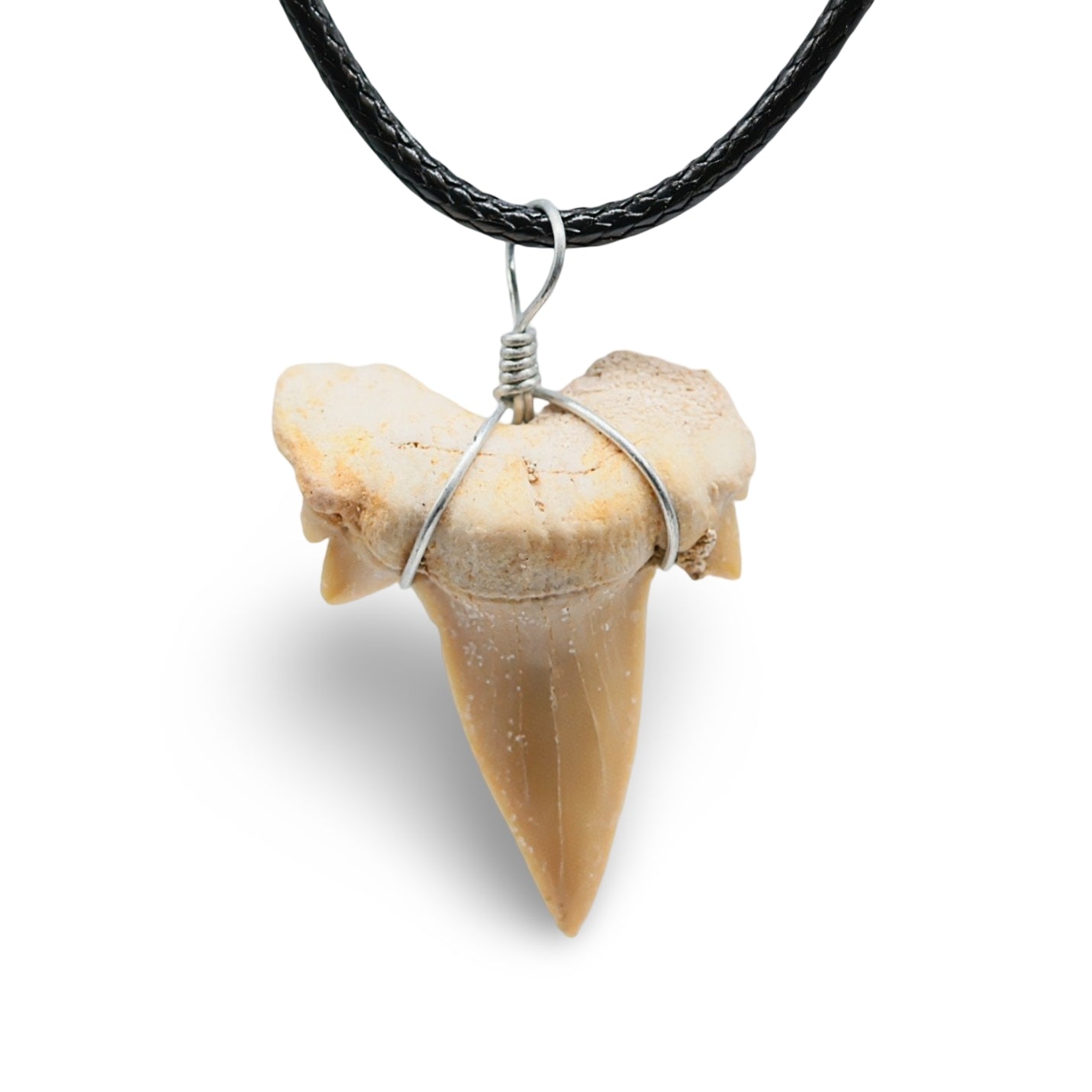 Introducing the "Necklace - Shark Tooth"! This unique necklace features a real fossilized shark tooth that's as rare as it is cool. These teeth come from ancient sharks like the tiger, mako, otodus, lamna, and the infamous megalodon. Imagine wearing a piece of history around your neck!