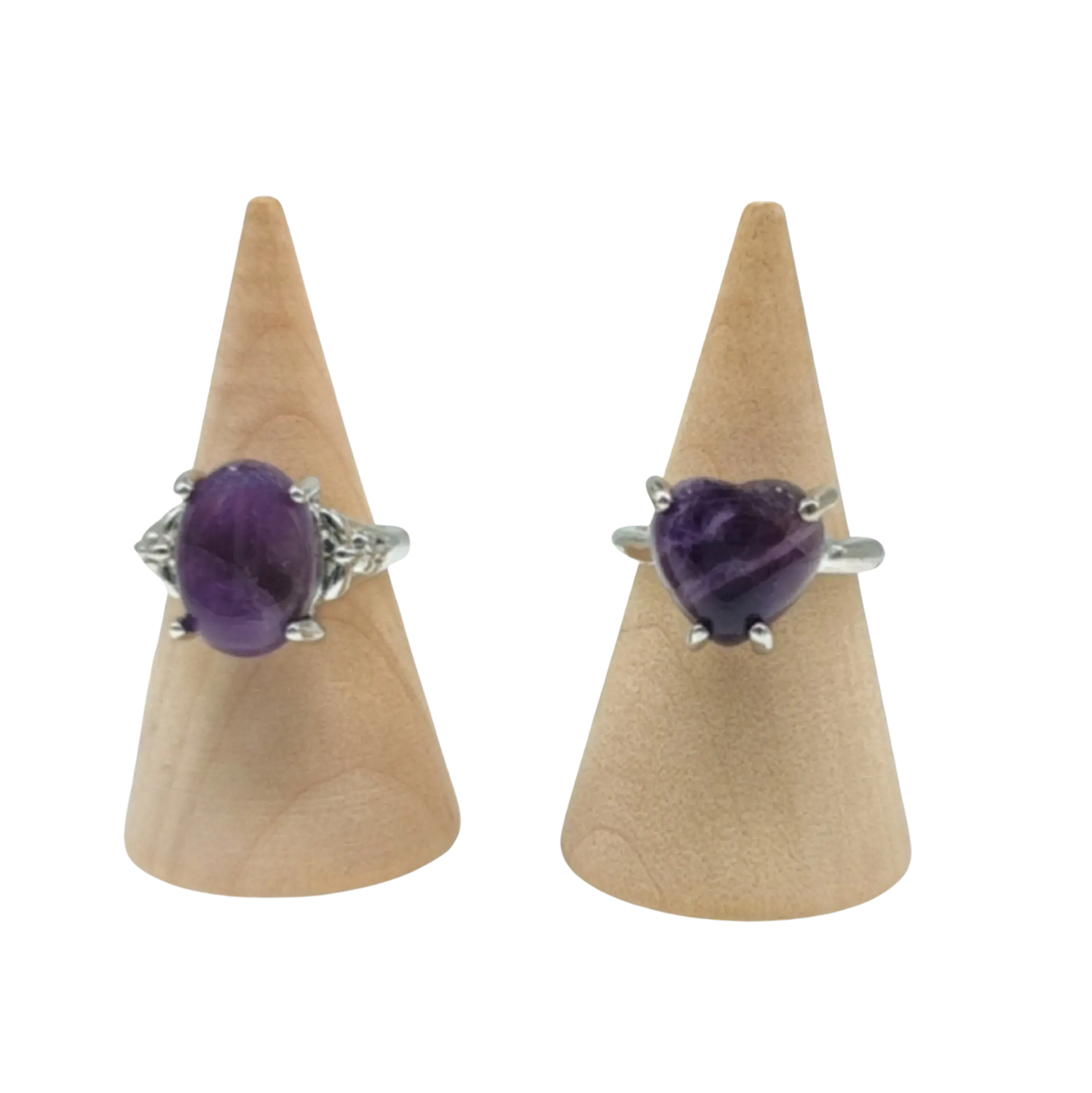 Each ring highlights the rich purple tones and natural variations of genuine amethyst. Designed in sizes 6 to 10, it offers comfortable and versatile wear. Amethyst is often associated with intuition, calm, and spiritual clarity, making this ring both visually striking and symbolically meaningful.