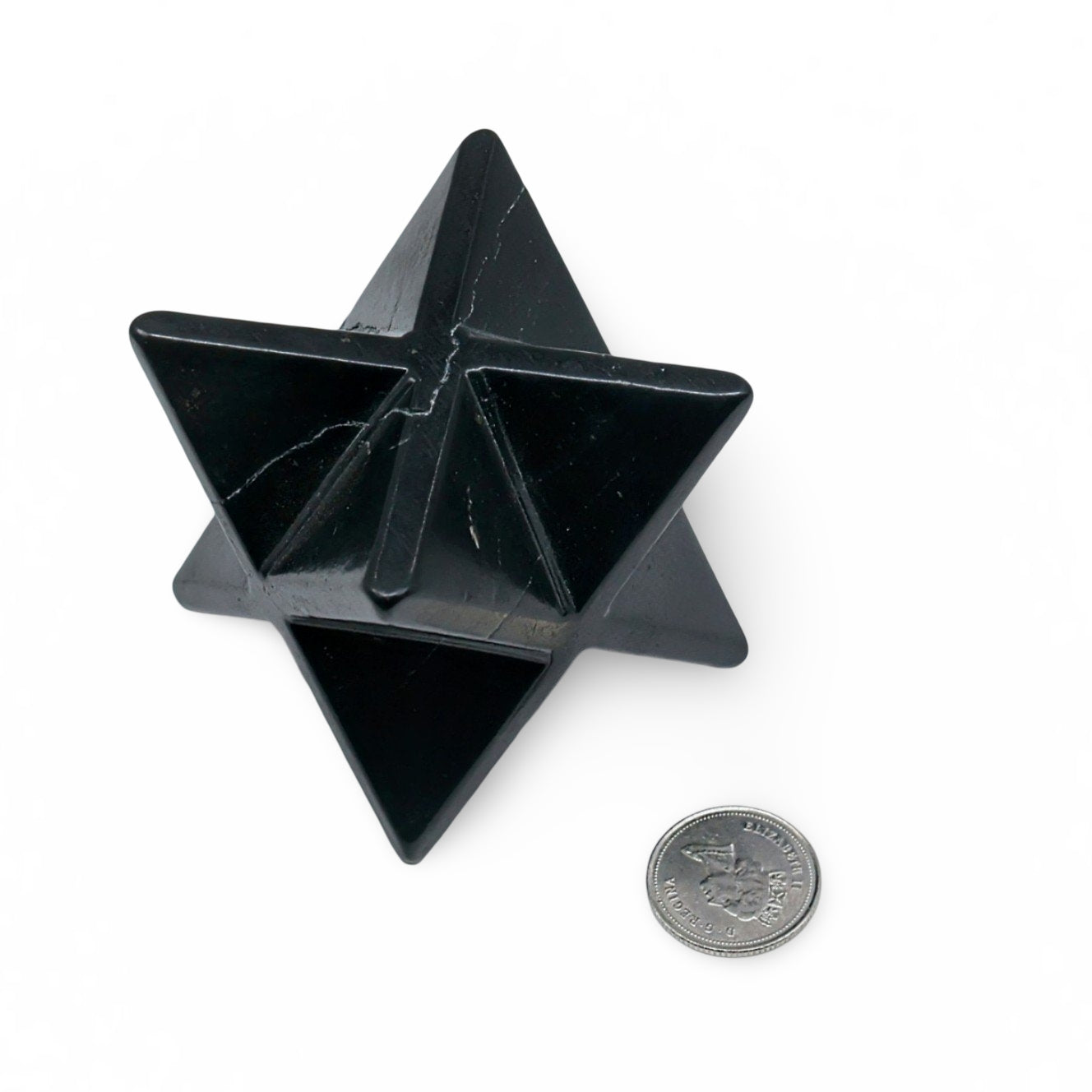 Discover the powerful properties of this hand-carved Natural Shungite Merkaba, sourced directly from Russia.