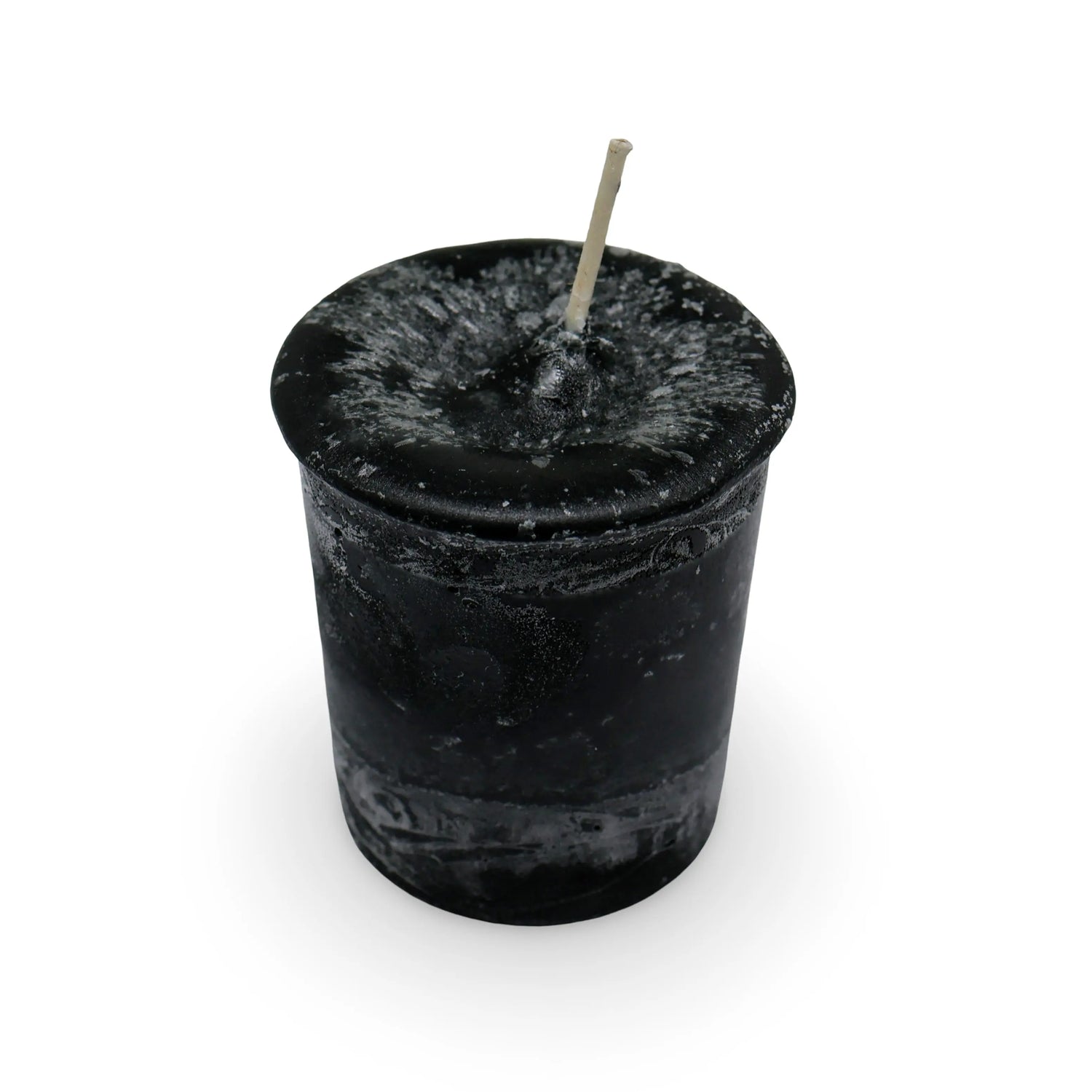 Invoke Protection and Ward Off Negative Energies with our Votive Herbal Scented Ritual Candle in Black